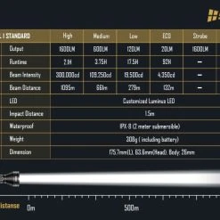 - High quality Luminus LED with a maximum output of 1600 lumens
