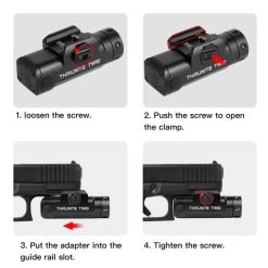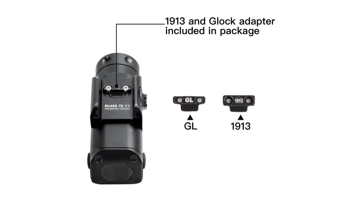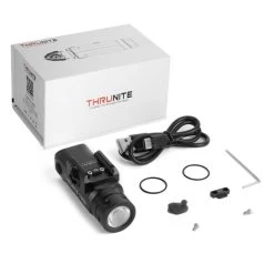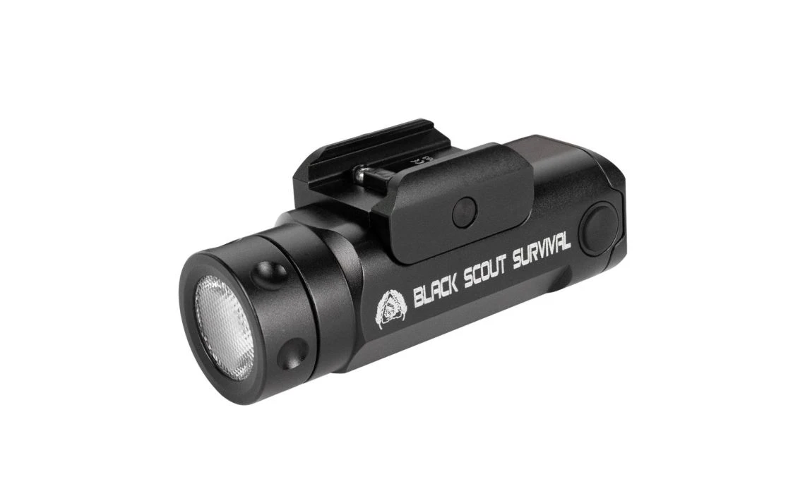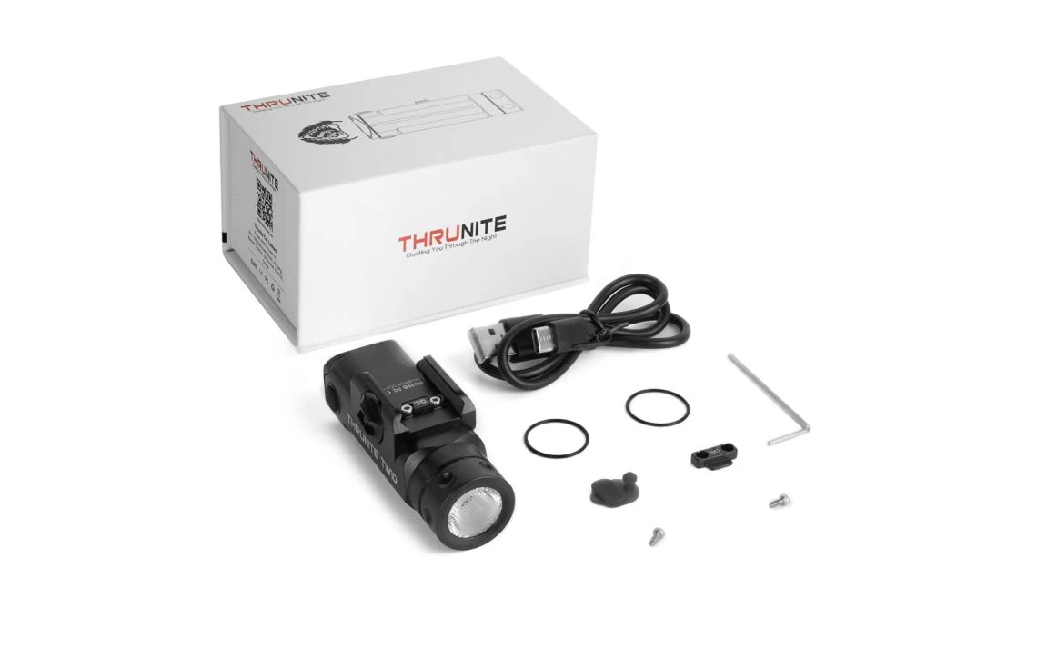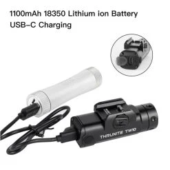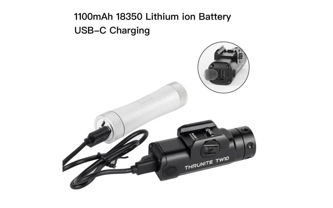 78g, 900 lumens: The ThruNite TW10 is a 900 lumens output LED rechargeable weaponlight designed primarily for mounting on a Glock-style handgun or any firearm with a 1913 Picatinny rail. It is made by ThruNite and co-branded with Black Scout Survival. It is powered by an included 18350 battery and has a runtime of 130 minutes in general mode. The ThruNite TW10 has side dual switches, making it suitable for people to turn on and off. Customised Black Scout Survival Edition USB-C rechargeable rail mount weapon light!