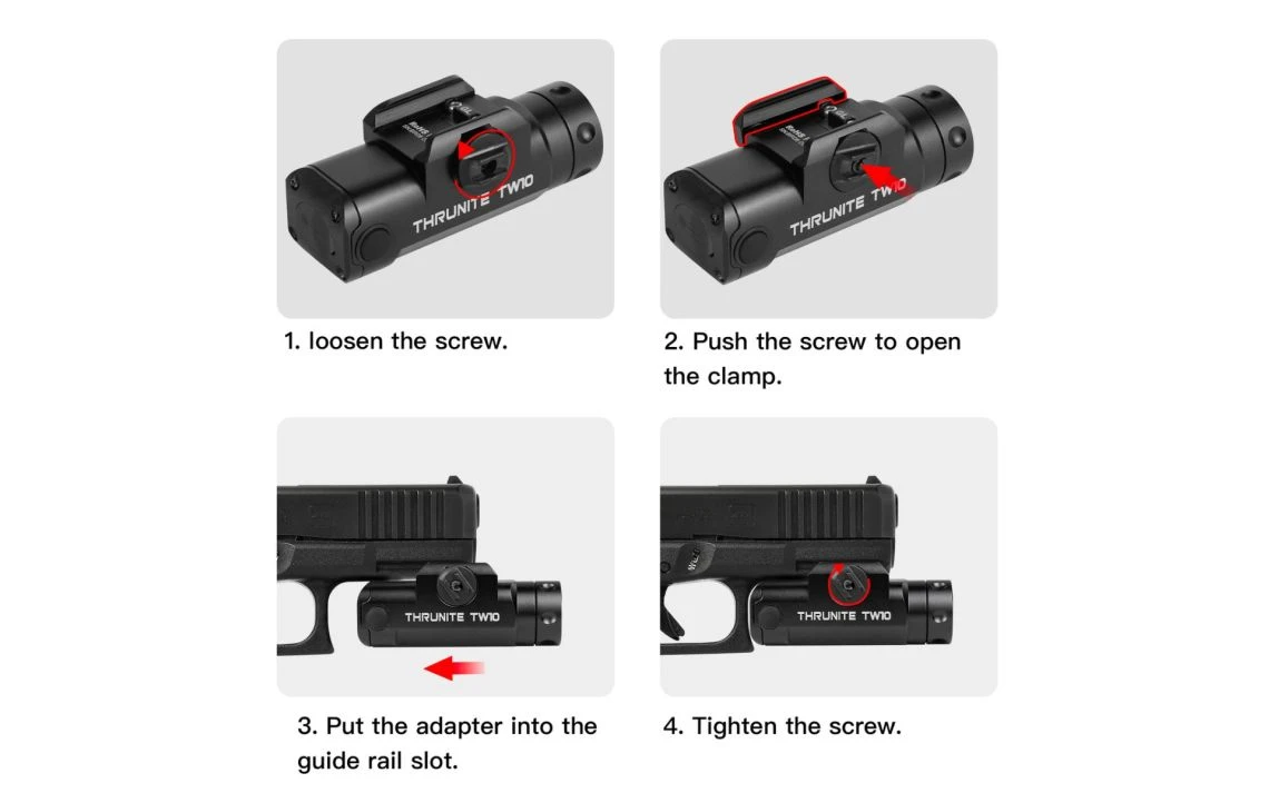 ThruNite TW10 has side dual switches which make this gun light is suitable for people to turn on/off. - IPX-8 Waterproof