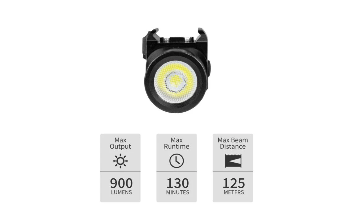 Max 900 Lumens weaponlight with SRAM P9 LED providing bright light and has max throw of 125 metres. - Compact and Durable