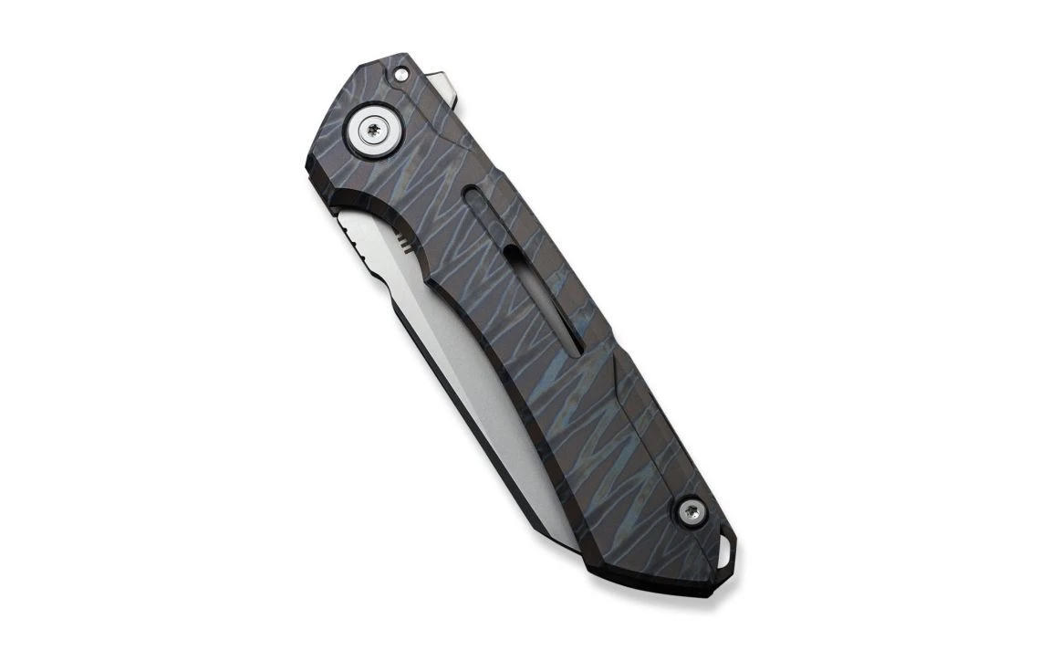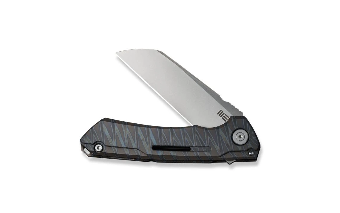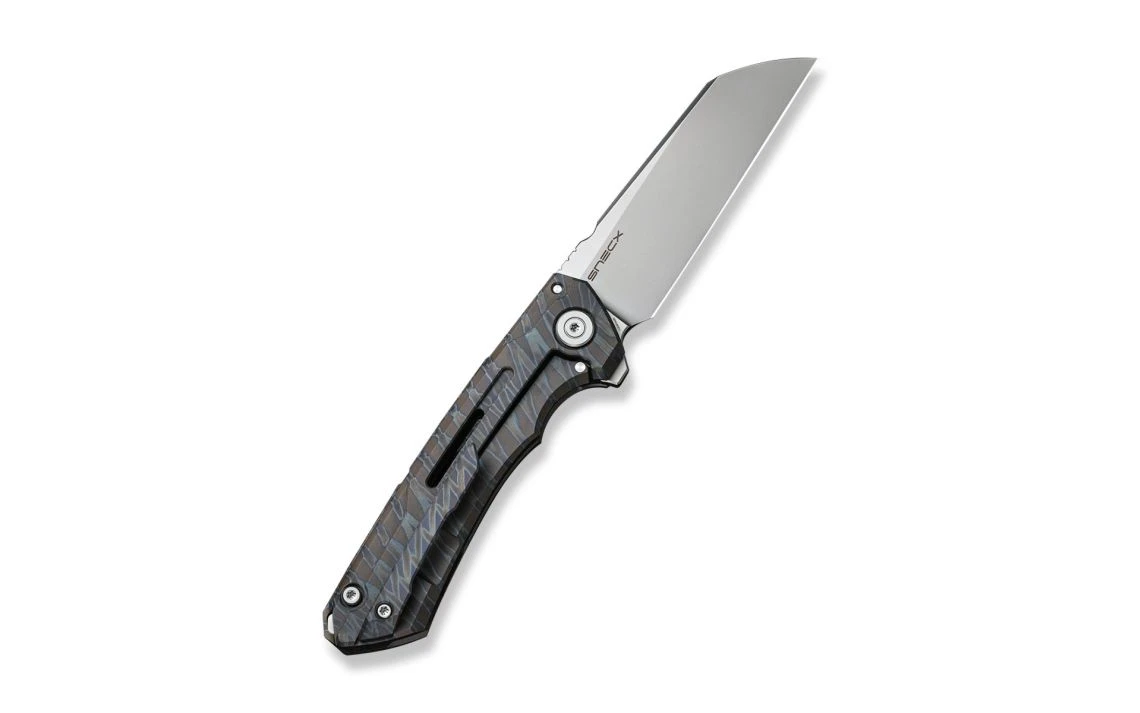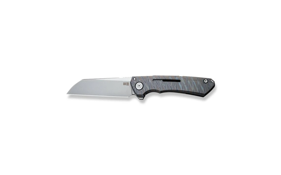 This collaboration between WE Knife Co. and Snecx Tan is one of the most exciting pieces. The trademark Snecx design is unique, and its traditional sheepsfoot blade is great for all sorts of cutting tasks. This is a robust, yet lightweight knife with great utility functionality