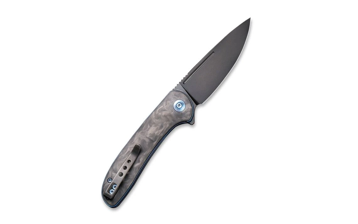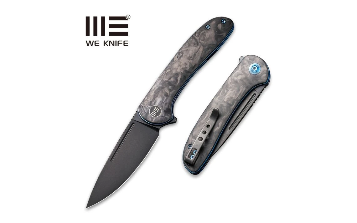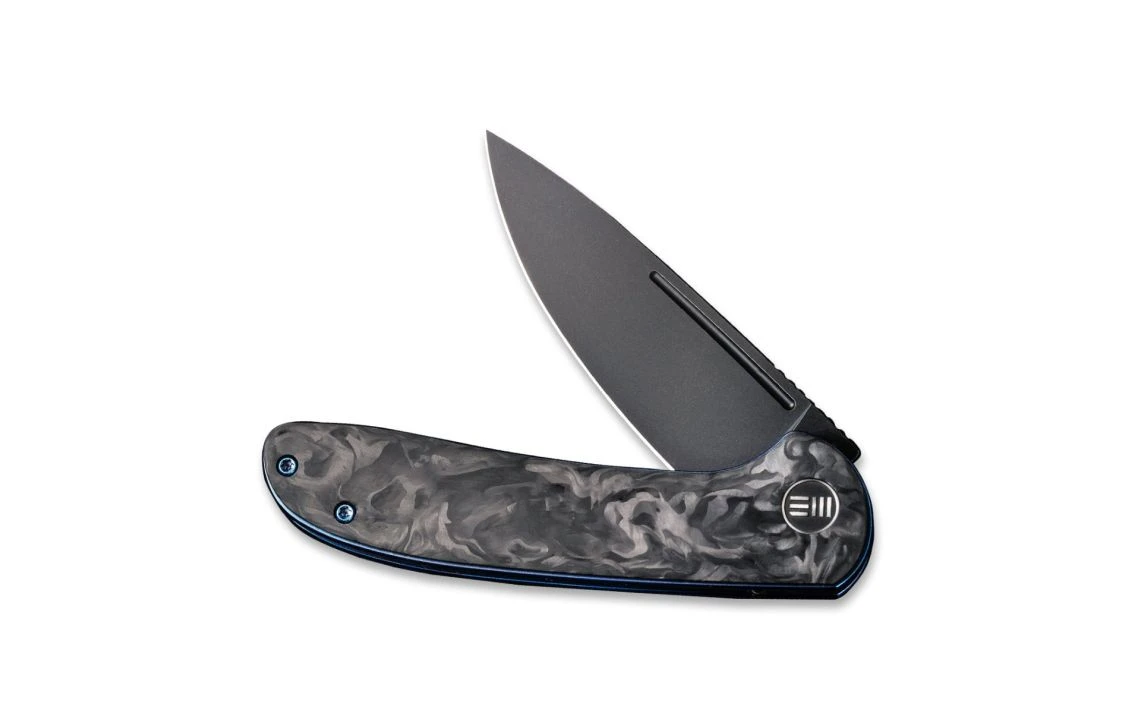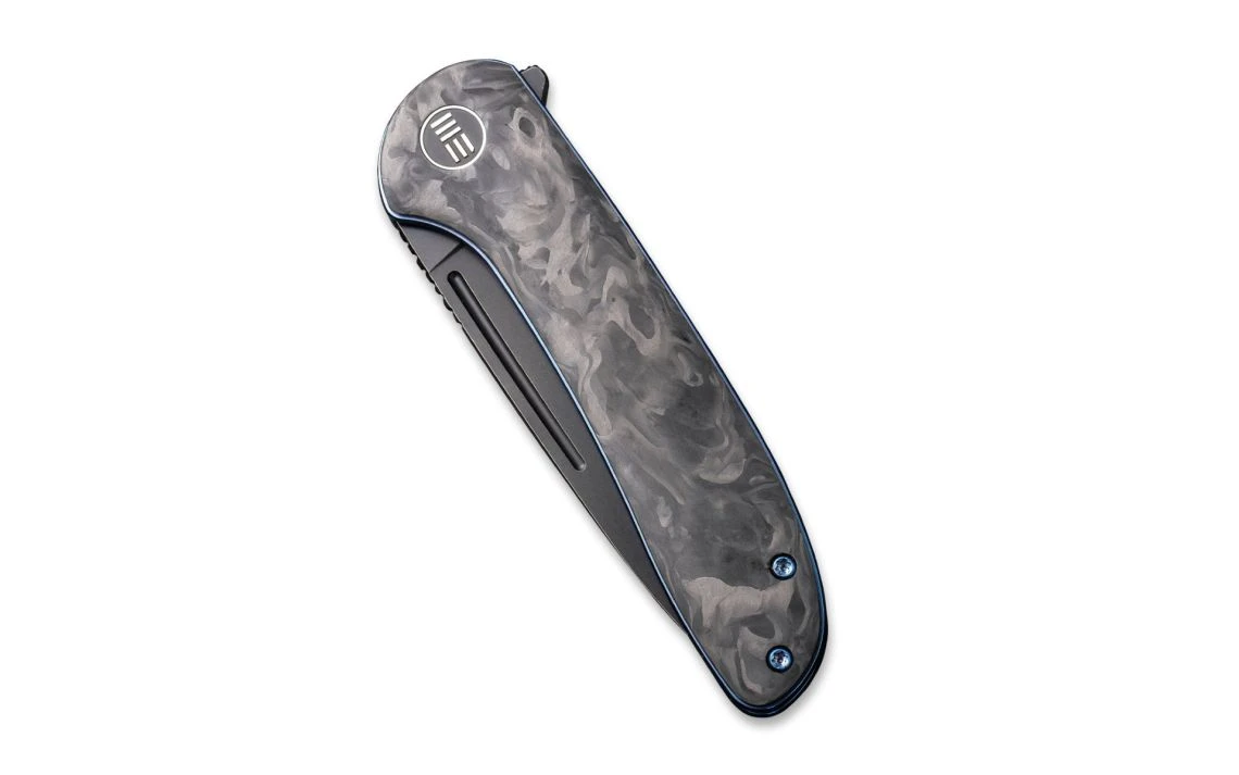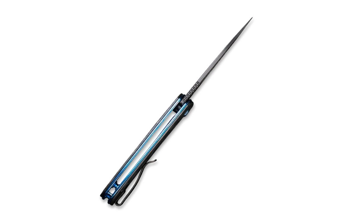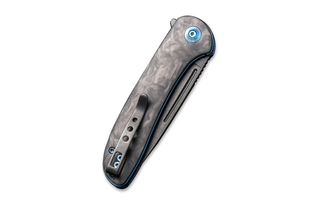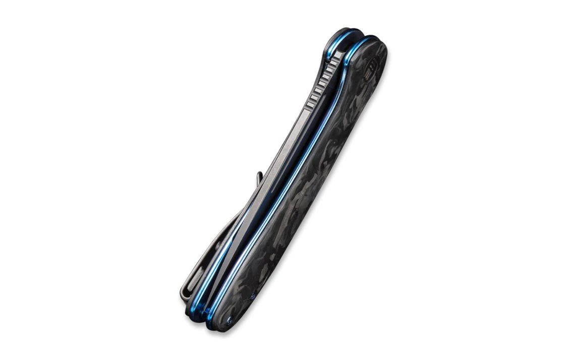 WE Knife Co.’s Saakshi is a unique design with premium steel and a carbon fibre handle. With titanium liners and hardware in the colour of blue, this knife is lightweight and comfortable for any person ranging from minimal to heavier tasks. The ceramic ball bearing pivot systems enables a very smooth and crisp opening of the knife which can be done by either the flipper tab or nail nick.