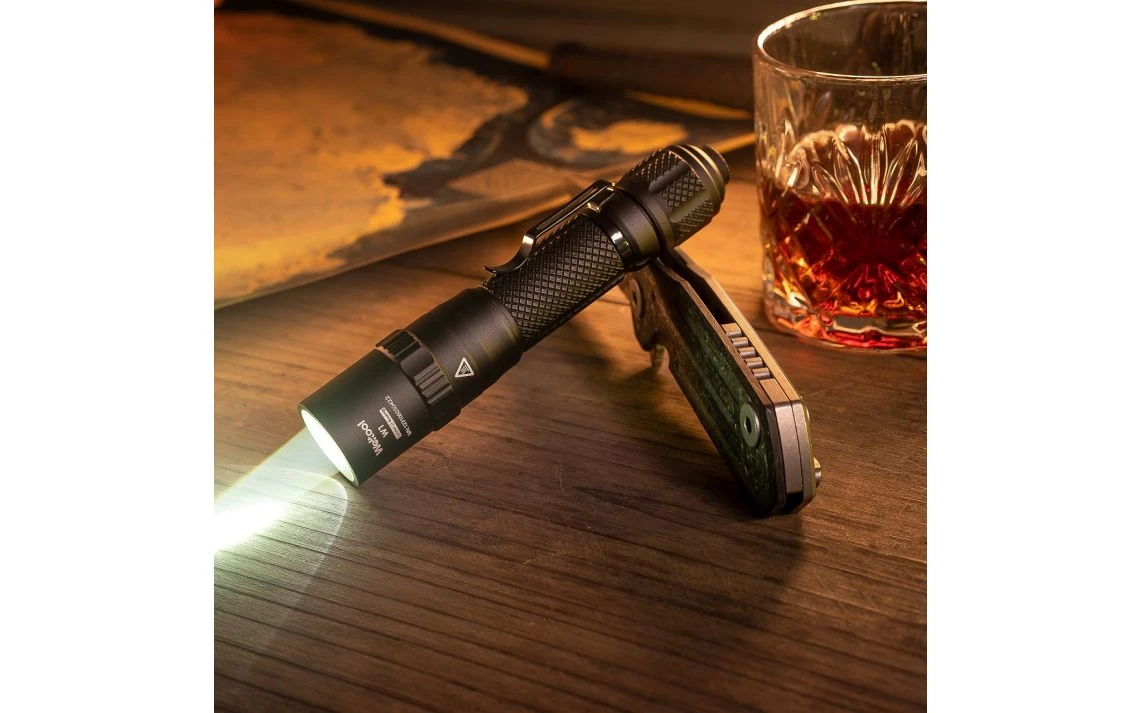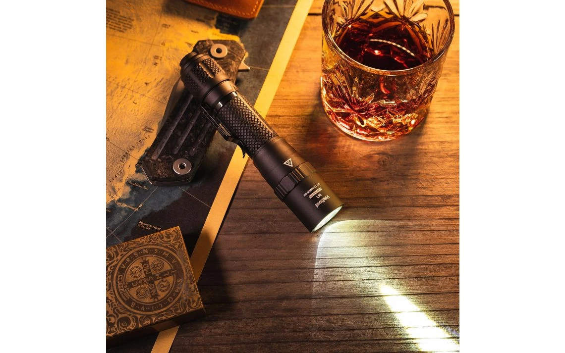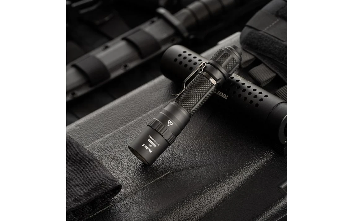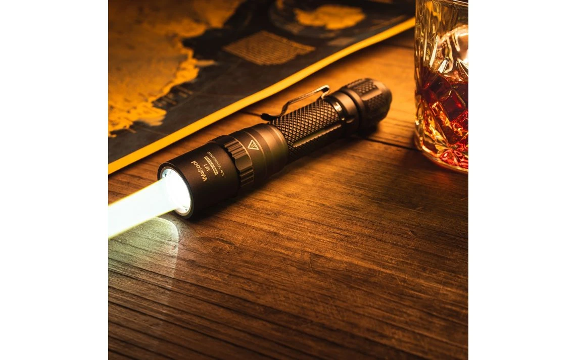 130.1g, 630 Lumens: The Weltool W1 is a compact high-performance long range thrower with a spill. It has a maximum output 630 lumens with 836 metres throw. The light head features a custom LEP light source and an innovative optical lens design. It has durable protection, battery protection features, and comes with a pocket clip. The tail-forward switch is shock-resistant and has an anti-fatigue spring structure. It includes a high drain 18650 battery and is ideal for tactical use. Compact 836m beam distance powerful LEP thrower with spill!