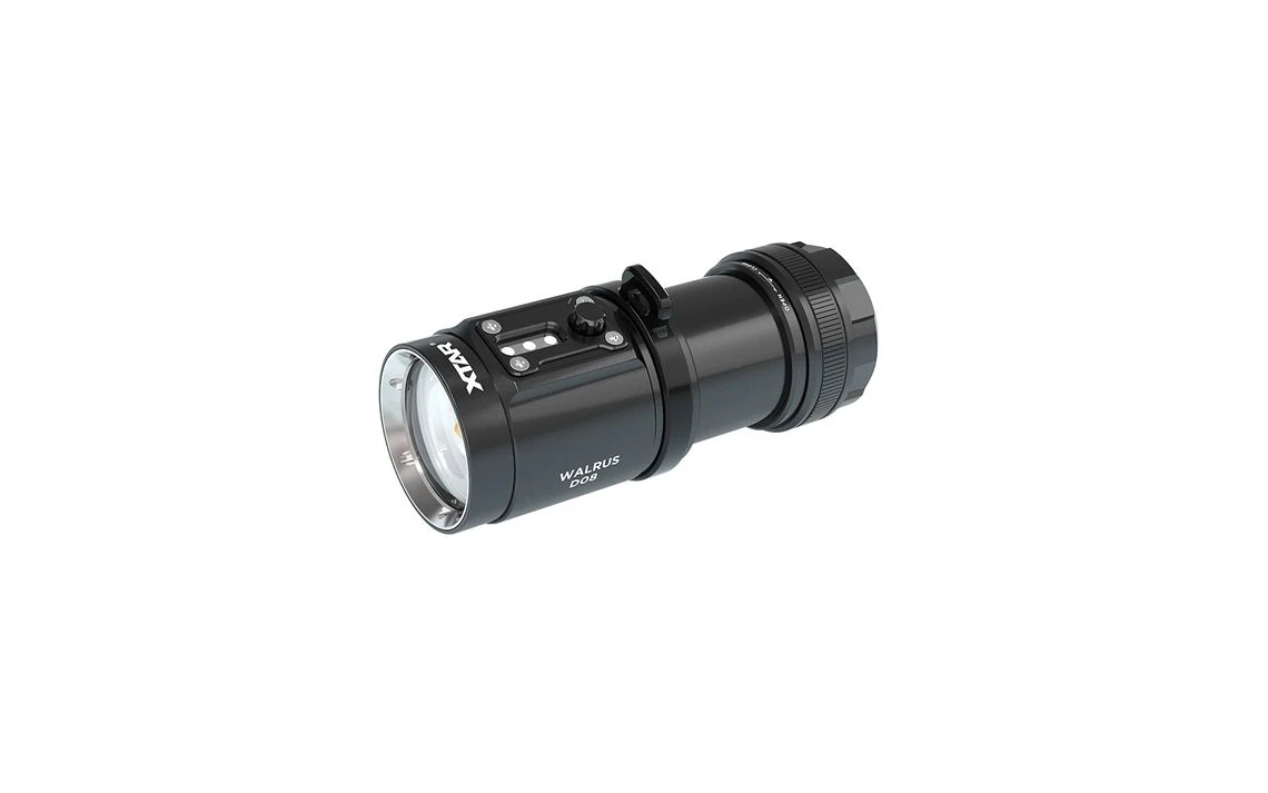 465g, 2000 Lumens : The Xtar Walrus D08 is new underwater powerful professional LED diving torch. It has perfect 120° wide beam angle with CRI 95 flood output for real and colourful underwater photography and videography. It features additional red secondary light, battery power LED display, rotary head switch, magnetic tail, tripod hole and anti-corrosion are few cool features. D08 uses IR to communicate the rotary switch signal back to the head for output selection. Dual switch design with 4 brightness modes including Red and SOS output. 2000 lumen Professional Diving torch Kit! Recommended for underwater Videography and Photography!
